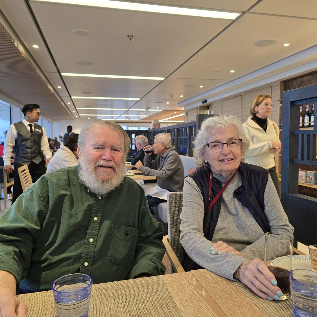 Around 9 we checked in with the parents. Mom was up and going to get ready. Dad had been awake and apparently wandering the ship between 2 and 6, and was thus back sleeping.