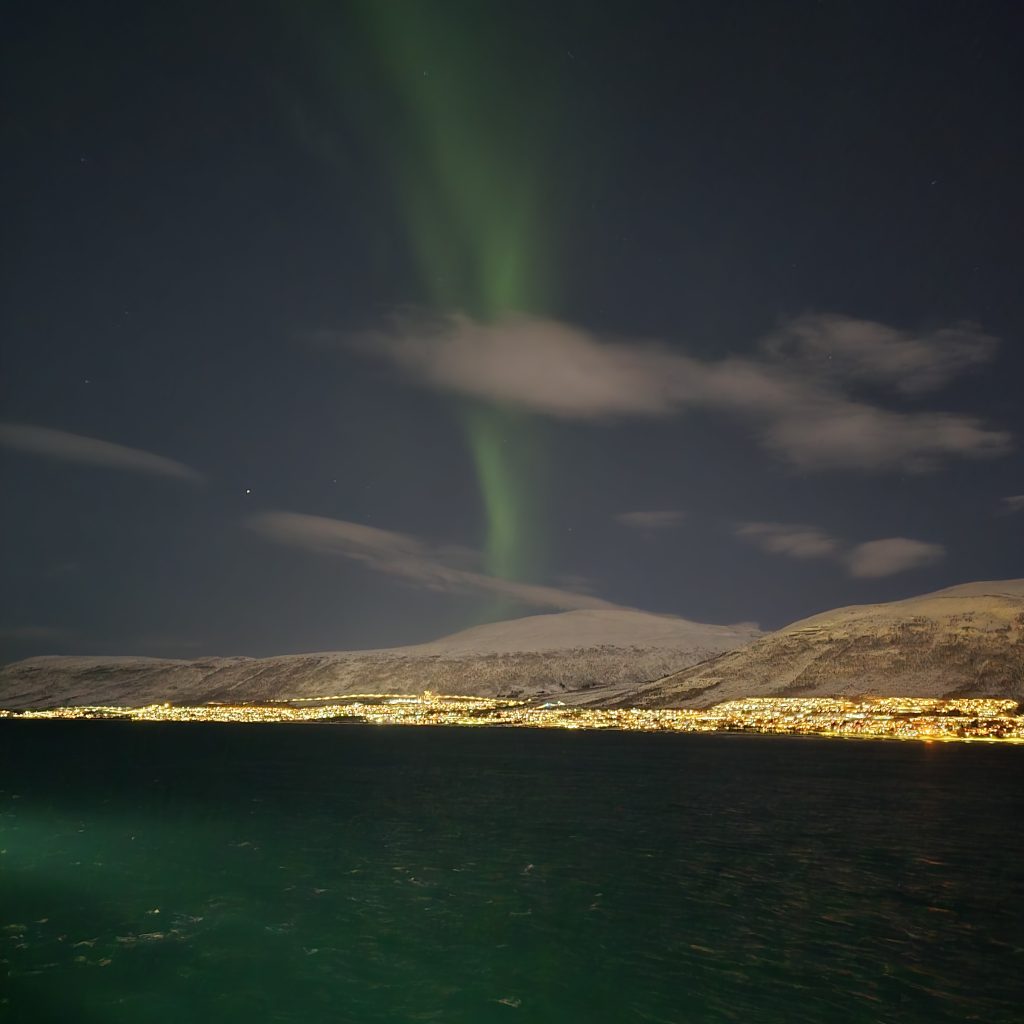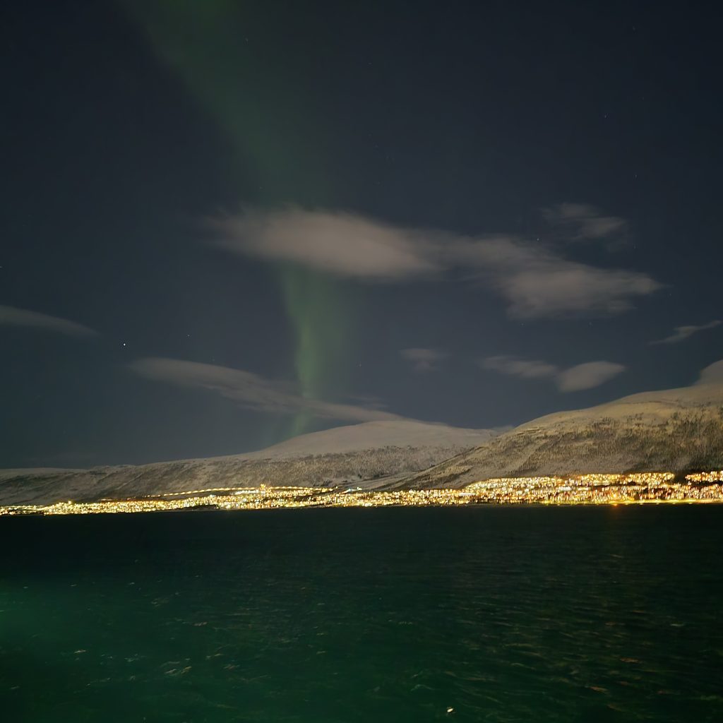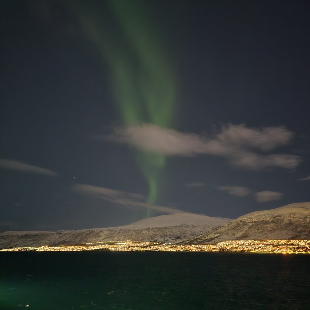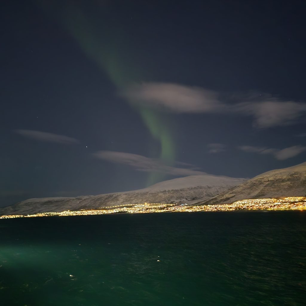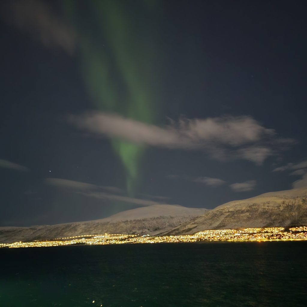 There will be another post about our adventures earlier in the day. At about 825pm, my sister was on an excursion to see the northern lights in Tromso. And I was in our parents stateroom, getting ready to say good night and return to mine. Our cruise director, Andre, came over the intercom system to say they were viewable from the port side. So my parents came back with me and saw the lights from that vantage point.