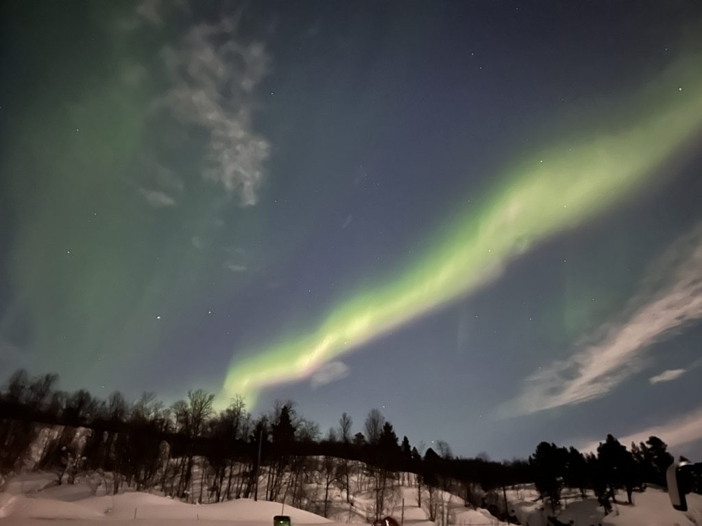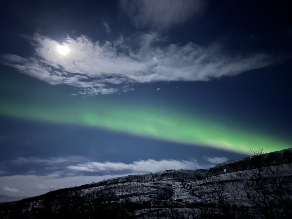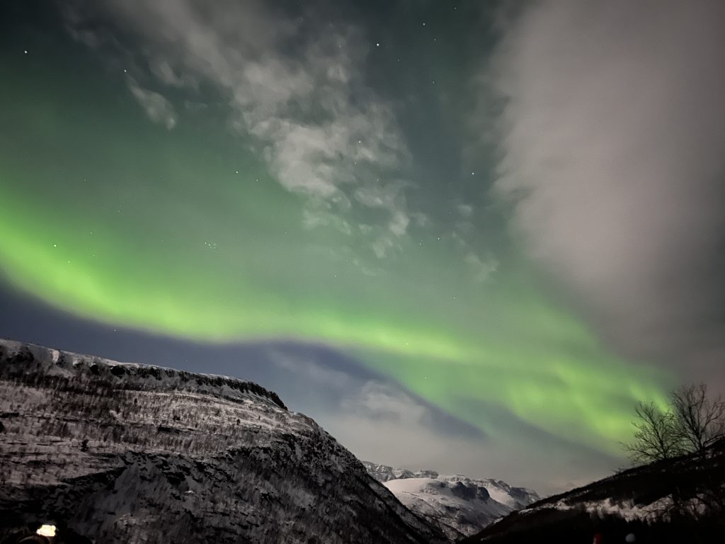 Our second night in Tromso, my sister and I had booked another tour to go chase the northern lights. After seeing some in Alta, and with weather expected in Tromso, we cancelled. And then my sister had second thoughts. She opted to find another tour, and it definitely worked out for her!